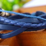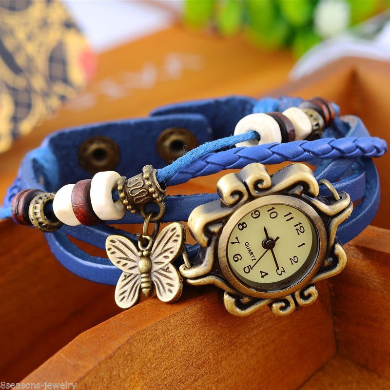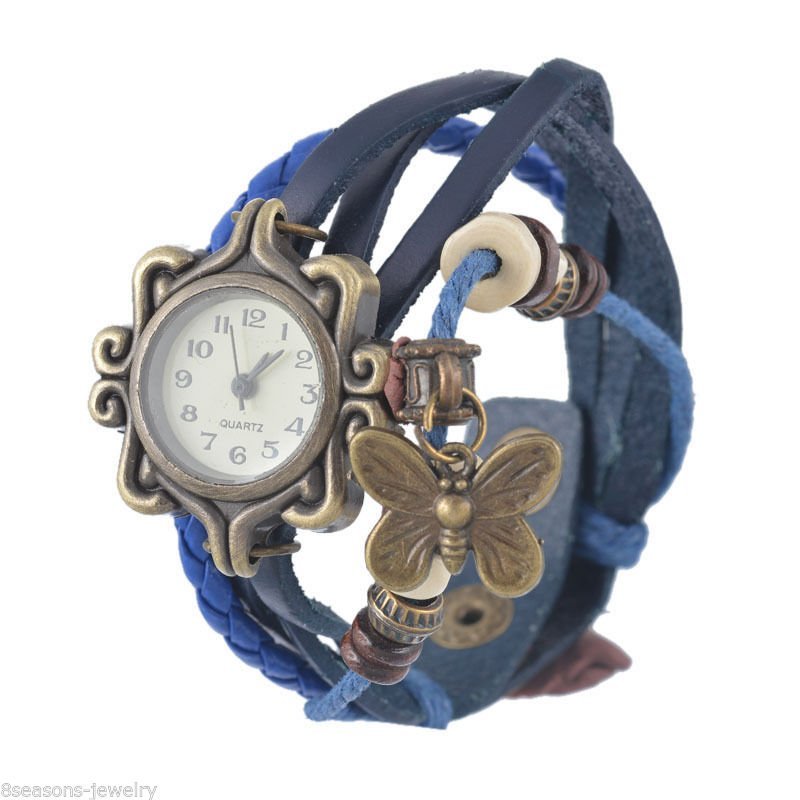 Blue Wavy Vintage Leather Bangle Watch / Quartz Fashion Woven Wrap Wave Leather Bracelet Watch