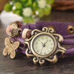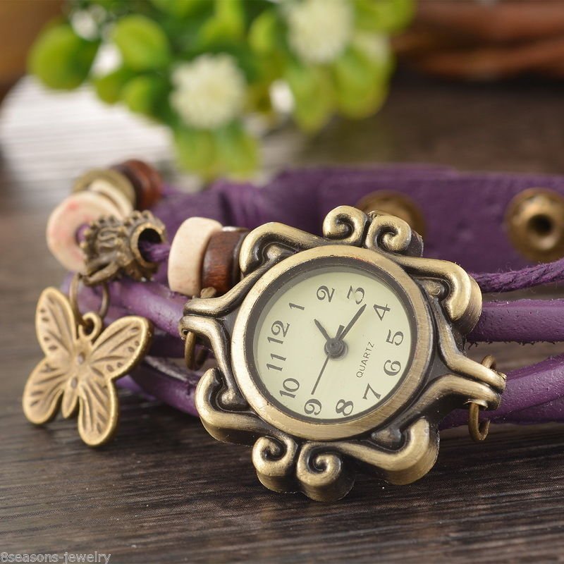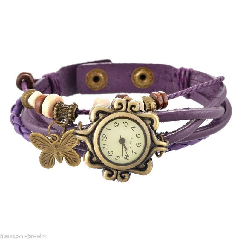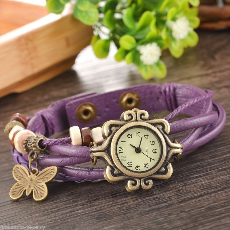 Purple Wavy Vintage Leather Bangle Watch / Quartz Fashion Woven Wrap Wave Leather Bracelet Watch