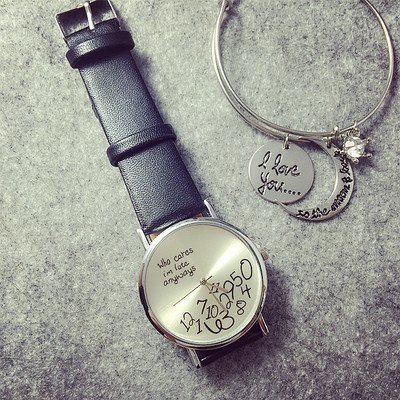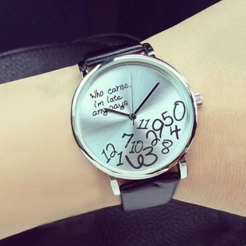 Unlike traditional watch designs, this fashion watch features a witty and humorous quote with a playful layout.