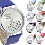 Features: Arabic numerals, printed quote design wristwatch