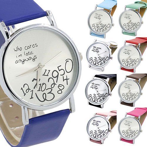 Unlike traditional watch designs, this fashion watch features a witty and humorous quote with a playful layout.
