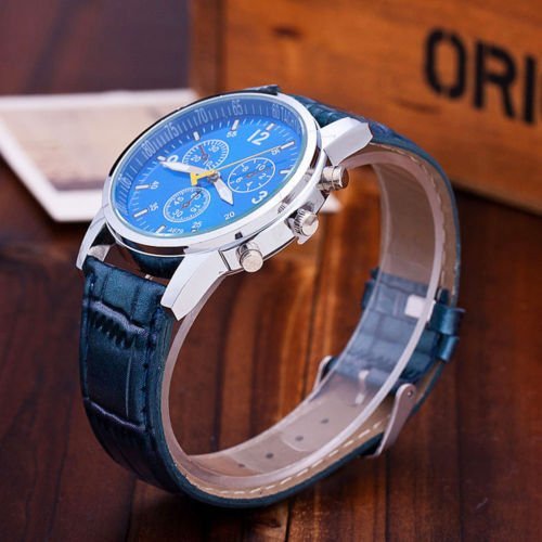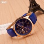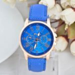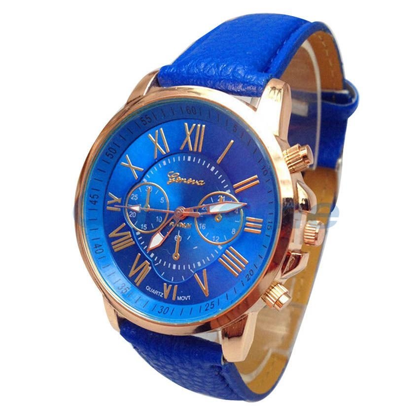 Geneva Leather Band Quartz Watch (Blue) / Roman Numerals · Stylish · Popular Casual Design