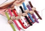 다이얼 테두리에 세팅된 큐빅이 반짝이며 고급스러움을 연출하고 있습니다.