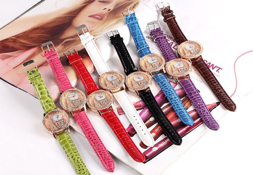 에펠탑과 건축 모티브 장식이 새겨진 럭셔리 감성 쿼츠 시계입니다.